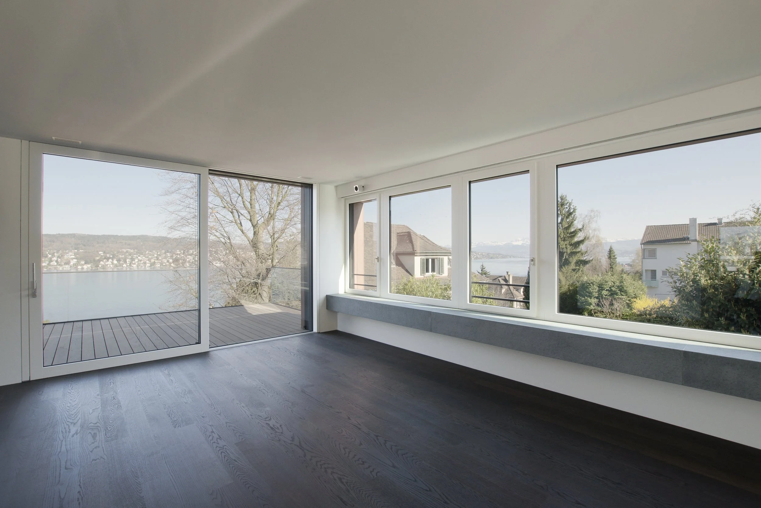grossformatige Panoramafenster mit Eckverglasung, rahmenlos & raumhoch
